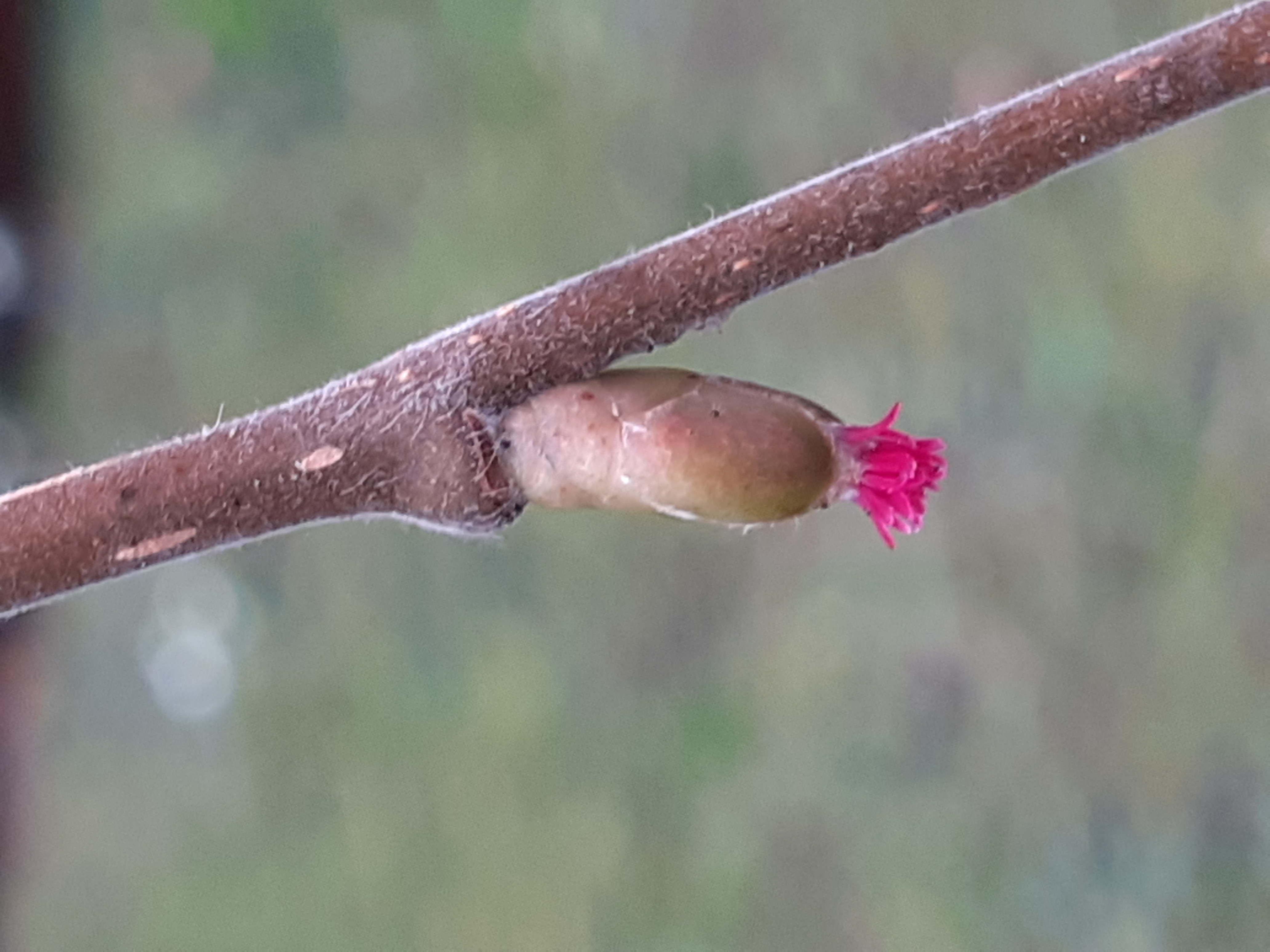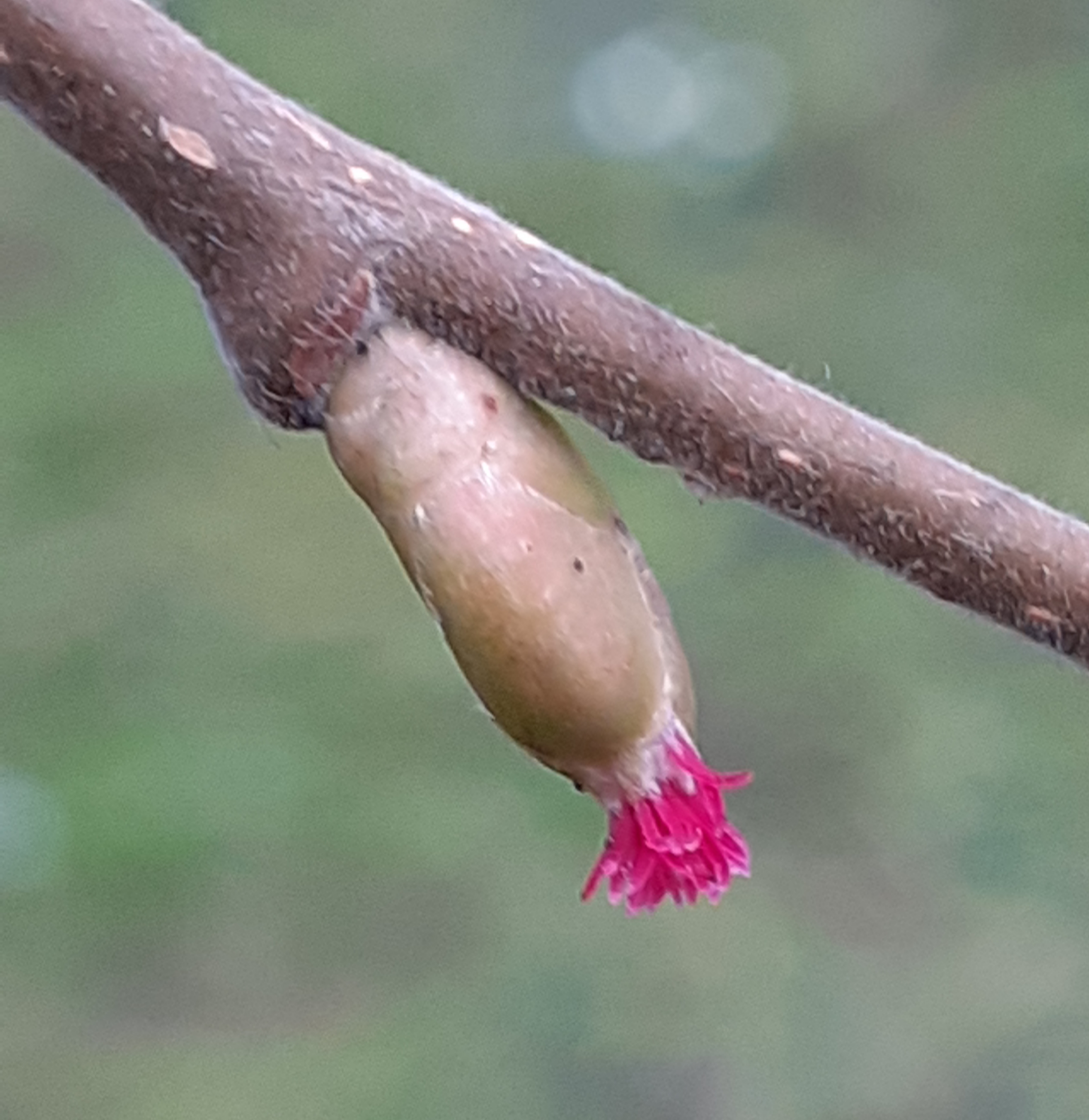 1-4(-20) m. Blätter rundl. bis verkehrt eifg, am Grunde etwas herzfg, am oberen Ende in eine ± ausgeprägte Spitze ausgezogen, eckig gelappt, doppelt grob gezähnt. männl. Kätzchen vor Laubaustrieb blühend, überwinternd, die weibl. Blüten den Laubknospen ähnelnd, nur durch die roten Narben erkennbar. Fruchtbecher glockenfg, umschließt gelbl. braune Nuss halb. |